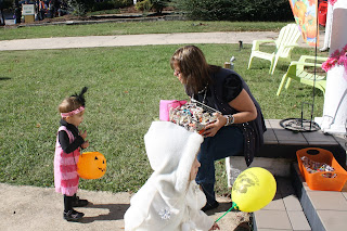 At the town square, they had games and booths set up. The girls each got a cookie and then we headed home to get ready for our next Halloween party later that night.